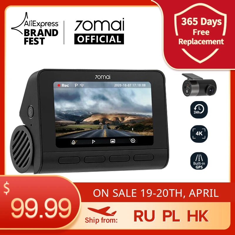 Best Car Electronics from 70mai Official Store for Car DVR Dash-Cam 2160P A800 ADAS Parking-140fov Dual-Sight 70mai Front Rear Real-4k 24H